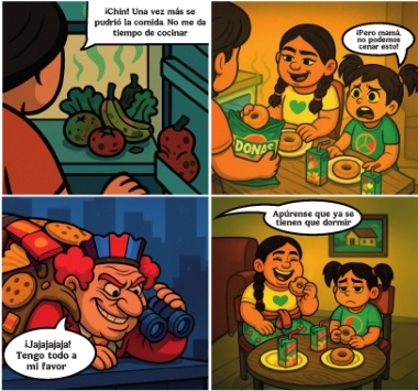 ¡Chin! Una vez más se pudrió la comida. No me da tiempo de cocinar ¡Pero mamá, no podemos cenar esto! Apúrense que ya se tienen que dormir ¡Jajajajaja! Tengo todo a mi favor