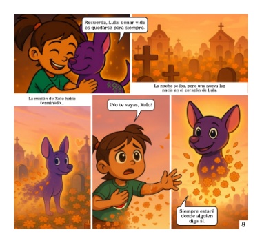 Recuerda, Lula: donar vida es quedarse para siempre. La noche se iba, pero una nueva luz nacía en el corazón de Lula. La misión de Xolo había terminado… ¡No te vayas, Xolo! Siempre estaré donde alguien diga sí. 8